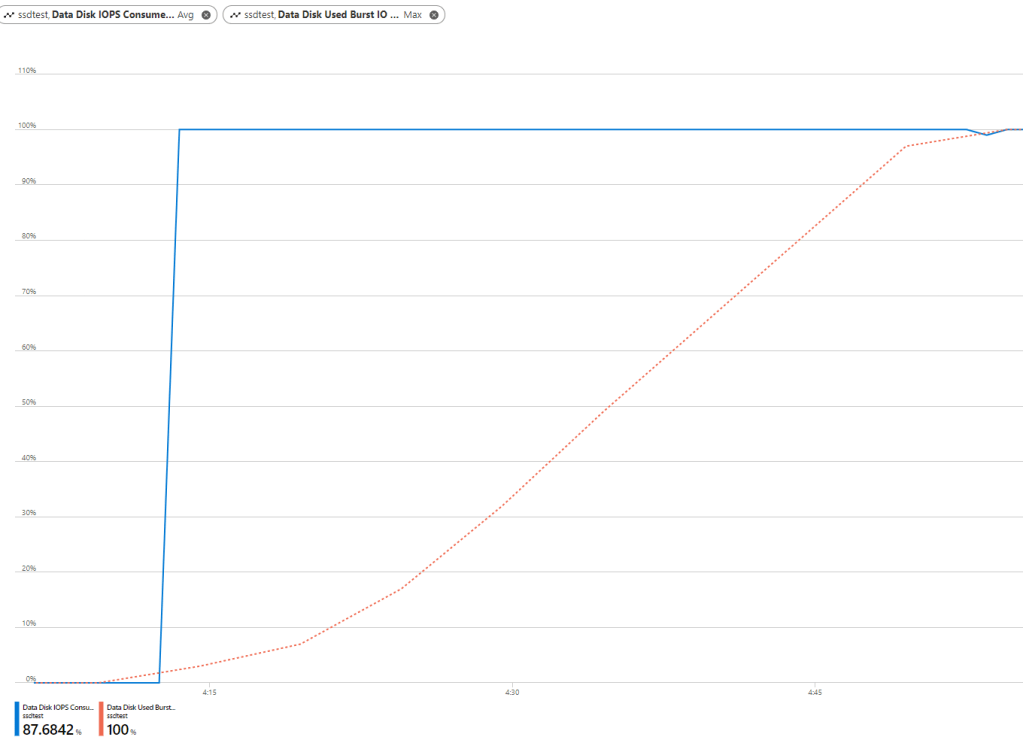 - Credit-based bursting. This is similar to how the burstable Bs series virtual machines work. You start with a bucket of credit and where the disk needs to burst, i.e. go above it’s provisioned amount of IOPS or throughput, it will consume the available credit from this bucket. This credit will typically provide up to 30 minutes of burst capacity per day and is provided for free for Standard SSD and Premium SSD disk sizes up to 512GB in size (1TB for Standard SSD).
