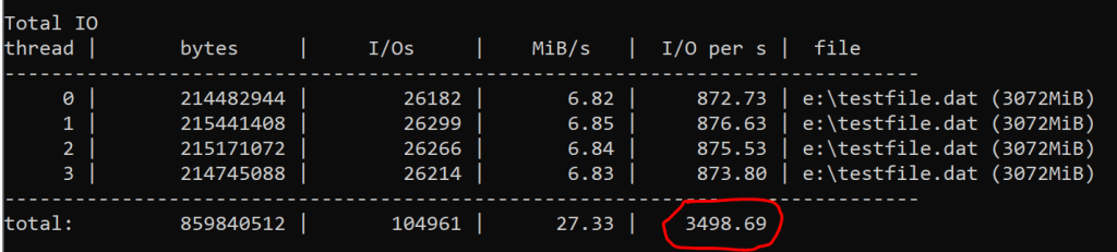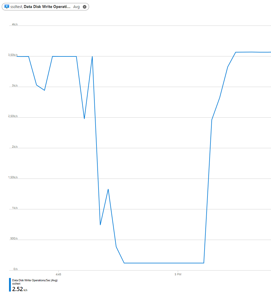 The results were as expected. The input/output operations per second maxed out at just under 3,500 IOPS.