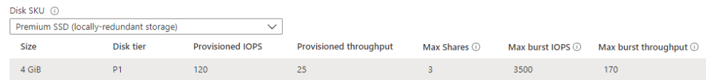 The next thing I did was to provision an empty P1 (4GB) Premium SSD disk on to a virtual machine that could handle at least 3,500 IOPS – there’s no point in doing this on a low end virtual machine that can’t handle the IOPS.