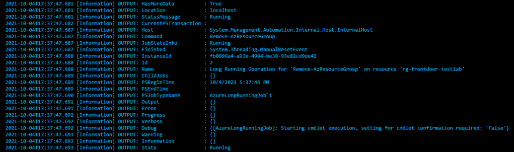 At this point, you should be good to go. I would recommend doing a test run without any tagged resource groups just to make sure the authentication is working correctly and that the code executes correctly. It will take several minutes on the first execution anyway as remember it will need to download and install the Az PowerShell module dependency.