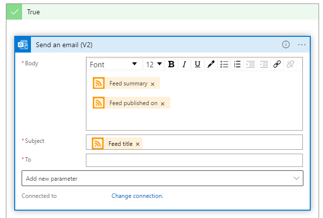 When my conditions are matched I will just receive an email with the details taken directly from the RSS feed item.