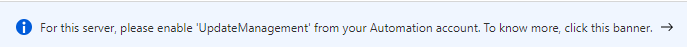 You may note the following message appears when clicking into any of these options. Each of these features is instead managed through an Automation Account so we will first have to deploy an Automation Account to make use of these features.