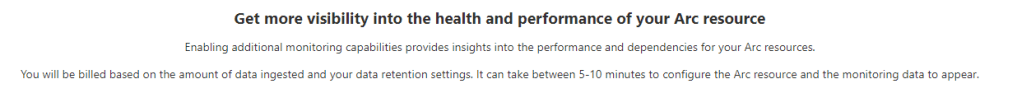By enabling insights, not only will we be able to monitor our Azure Arc managed virtual machines but this process also deploys the Log Analytics and dependency agents that we will need for guest OS management operations in the next section.