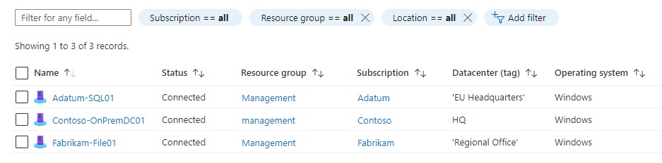 You will also be able to query these resources using Azure Resource Graph and even onboard to Microsoft Defender for Cloud. If you are using Microsoft Sentinel, then these machines can also be connected to this service for security event log ingestion and analysis.