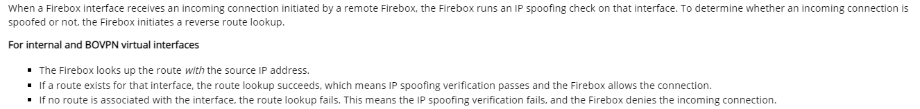 The packets were hitting the Watchguard NVA but getting dropped by an internal policy due to IP spoofing.